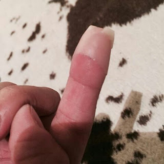 人指し指を怪我して(傷ができて)、絆創膏を巻く。